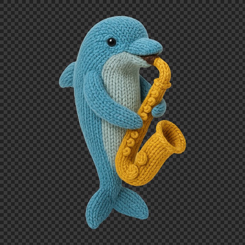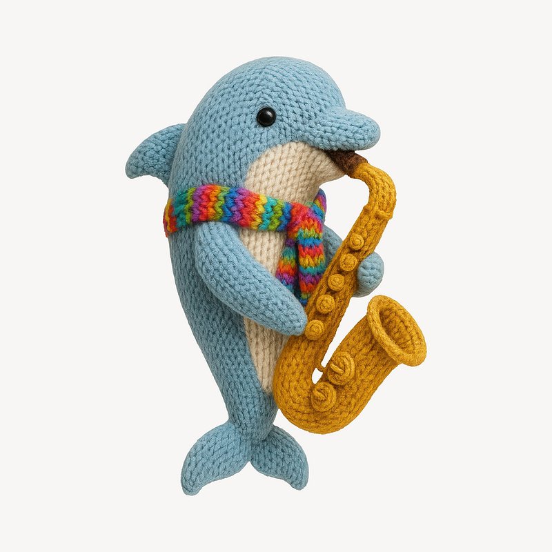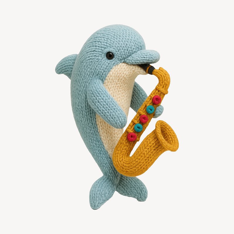 Knitted dolphin playing saxophone. https://www.rawpixel.com/image/24532601/knitted-dolphin-playing-saxophoneView license