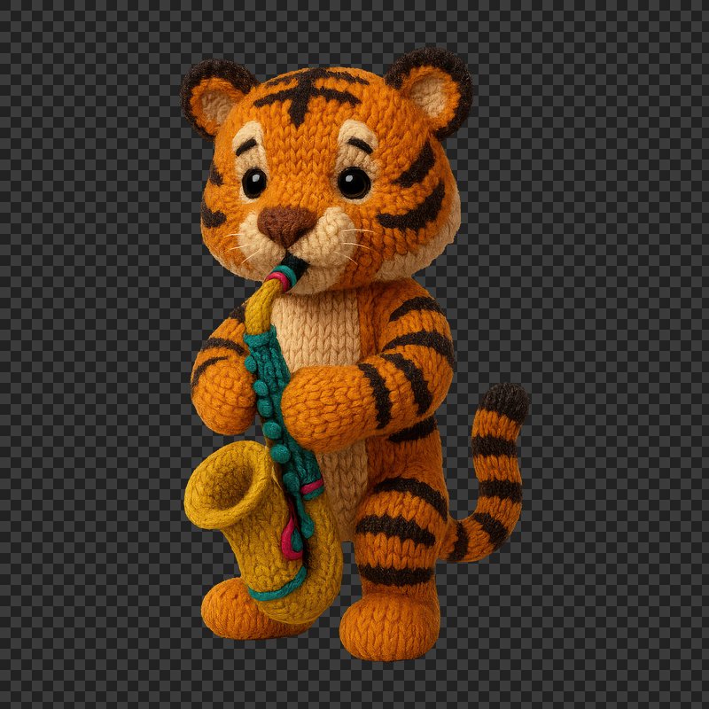 PNG Knitted tiger playing saxophone https://www.rawpixel.com/image/24522177/png-knitted-tiger-playing-saxophoneView license