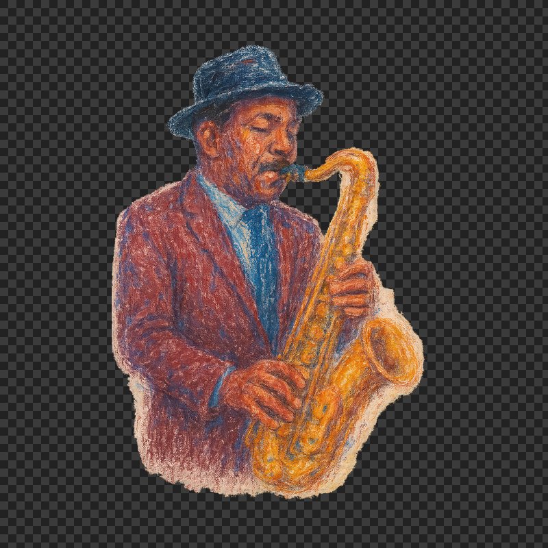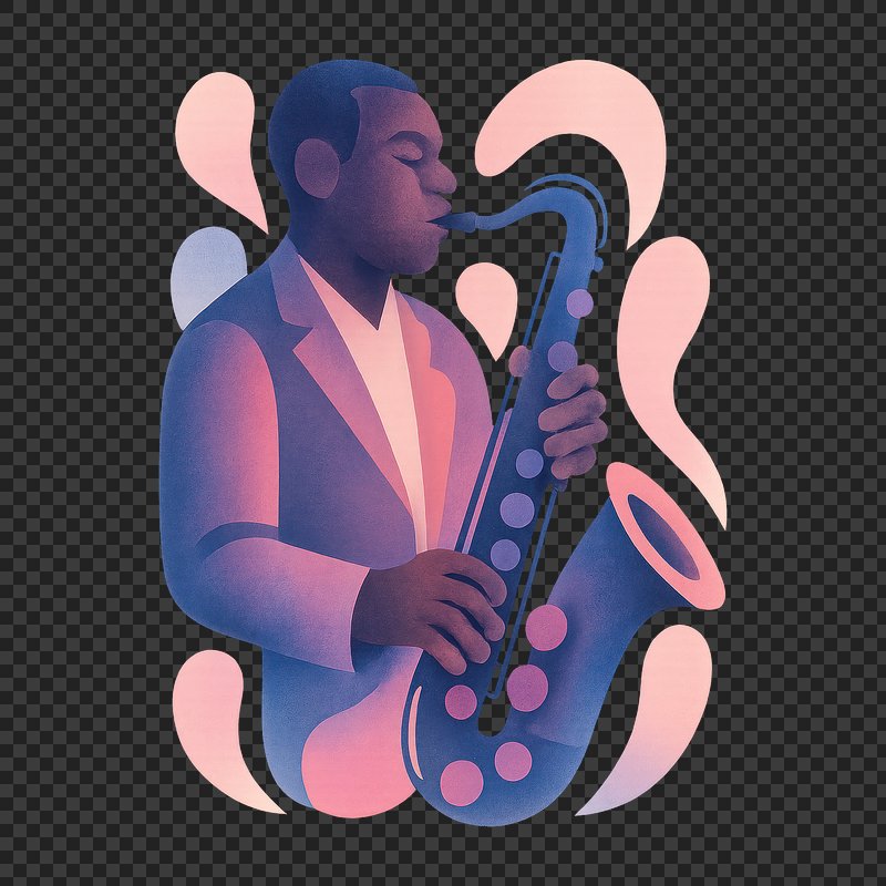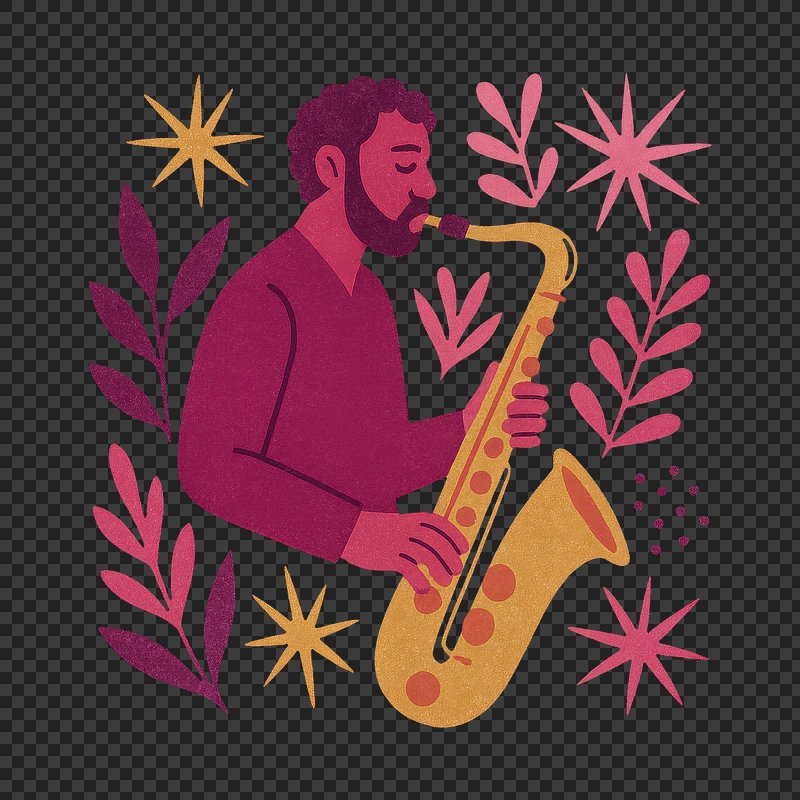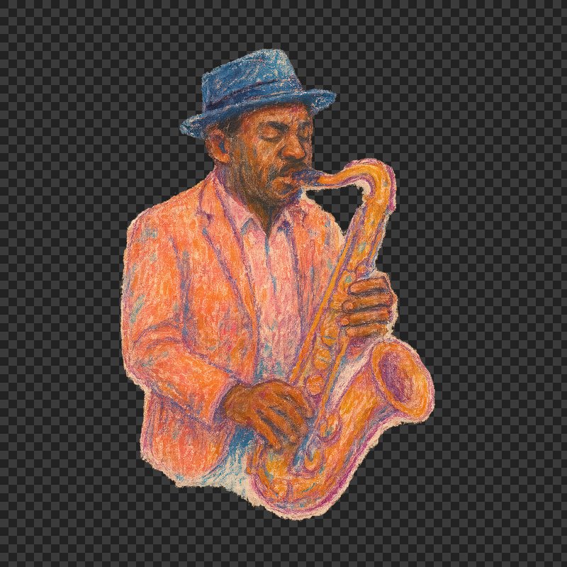 PNG Colorful jazz saxophonist illustration. https://www.rawpixel.com/image/24898302/png-colorful-jazz-saxophonist-illustrationView license