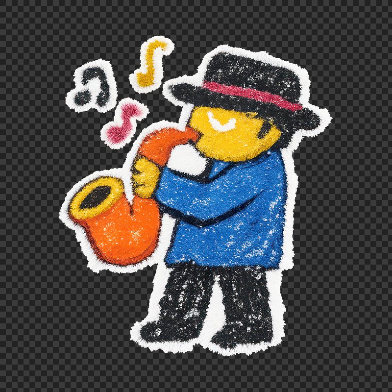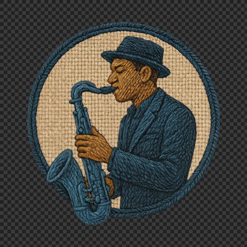 PNG Embroidered saxophonist patch illustration. https://www.rawpixel.com/image/24370008/png-embroidered-saxophonist-patch-illustrationView license