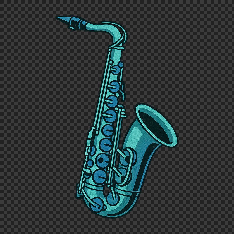 PNG Illustrated teal saxophone graphic. https://www.rawpixel.com/image/24671767/png-illustrated-teal-saxophone-graphicView license