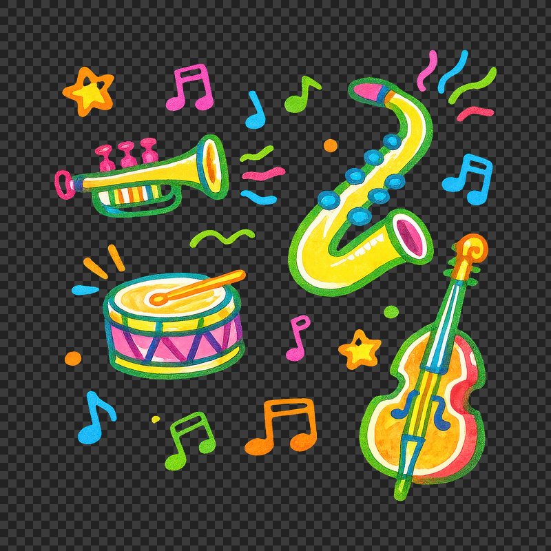 PNG Colorful musical instruments illustration. https://www.rawpixel.com/image/24447251/png-colorful-musical-instruments-illustrationView license
