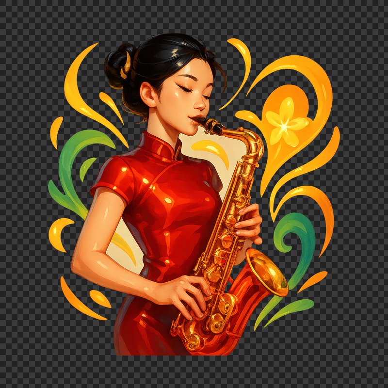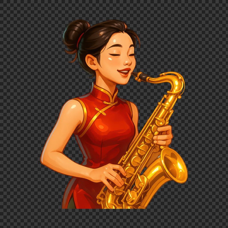 PNG Woman playing saxophone illustration. https://www.rawpixel.com/image/25005389/png-woman-playing-saxophone-illustrationView license