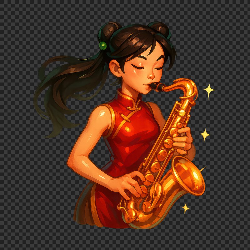 PNG Animated girl playing saxophone beautifully. https://www.rawpixel.com/image/25005381/png-animated-girl-playing-saxophone-beautifullyView license