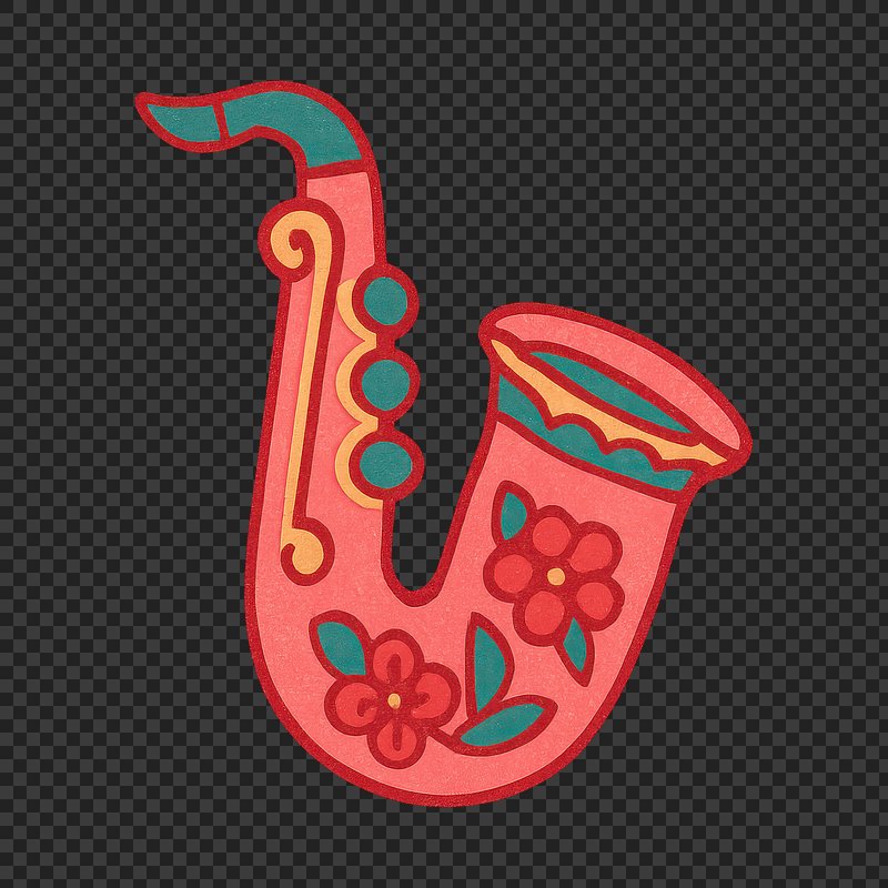 PNG Colorful floral saxophone illustration. https://www.rawpixel.com/image/24917022/png-colorful-floral-saxophone-illustrationView license