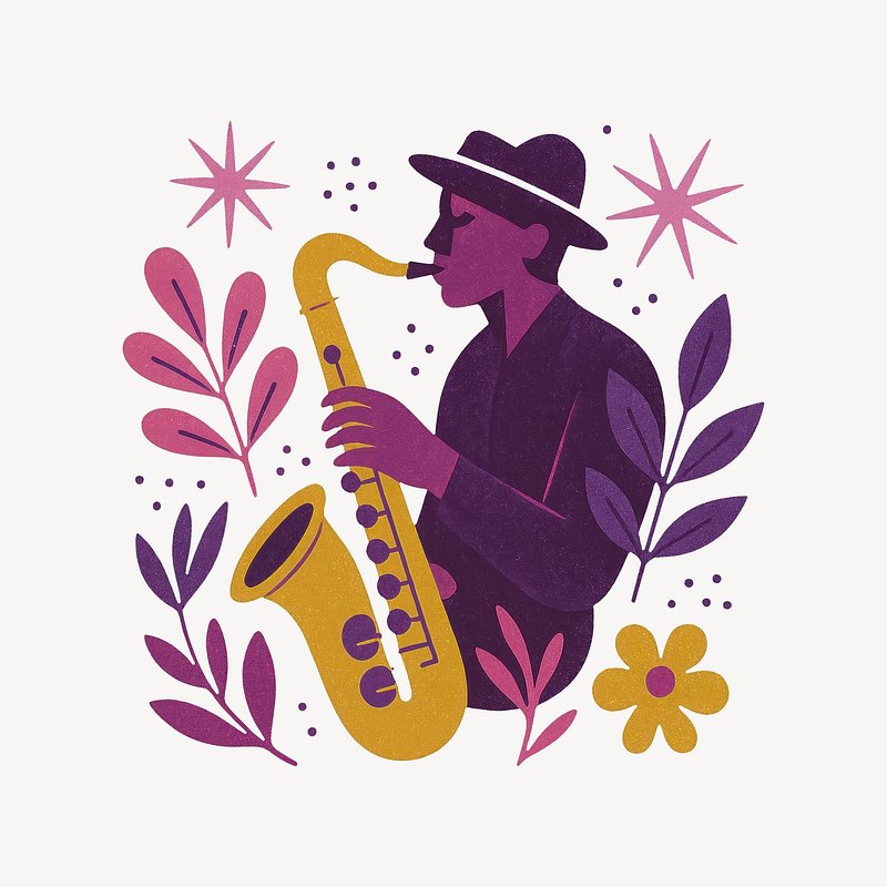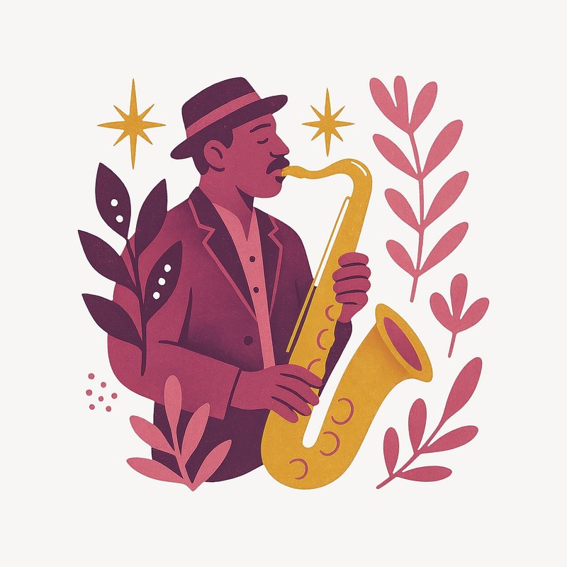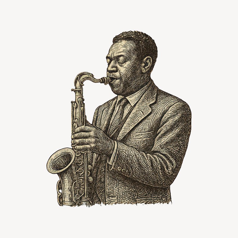 Vintage jazz saxophonist illustration. https://www.rawpixel.com/image/24650523/vintage-jazz-saxophonist-illustrationView license