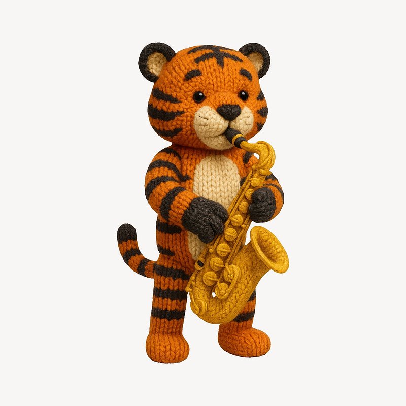Knitted tiger playing saxophone https://www.rawpixel.com/image/24608755/knitted-tiger-playing-saxophoneView license