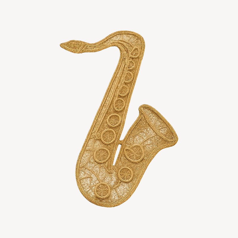 Golden saxophone embroidery design. https://www.rawpixel.com/image/24951287/golden-saxophone-embroidery-designView license