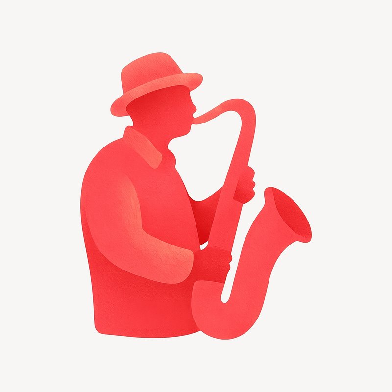 Stylized saxophonist illustration in red. https://www.rawpixel.com/image/25060435/stylized-saxophonist-illustration-redView license