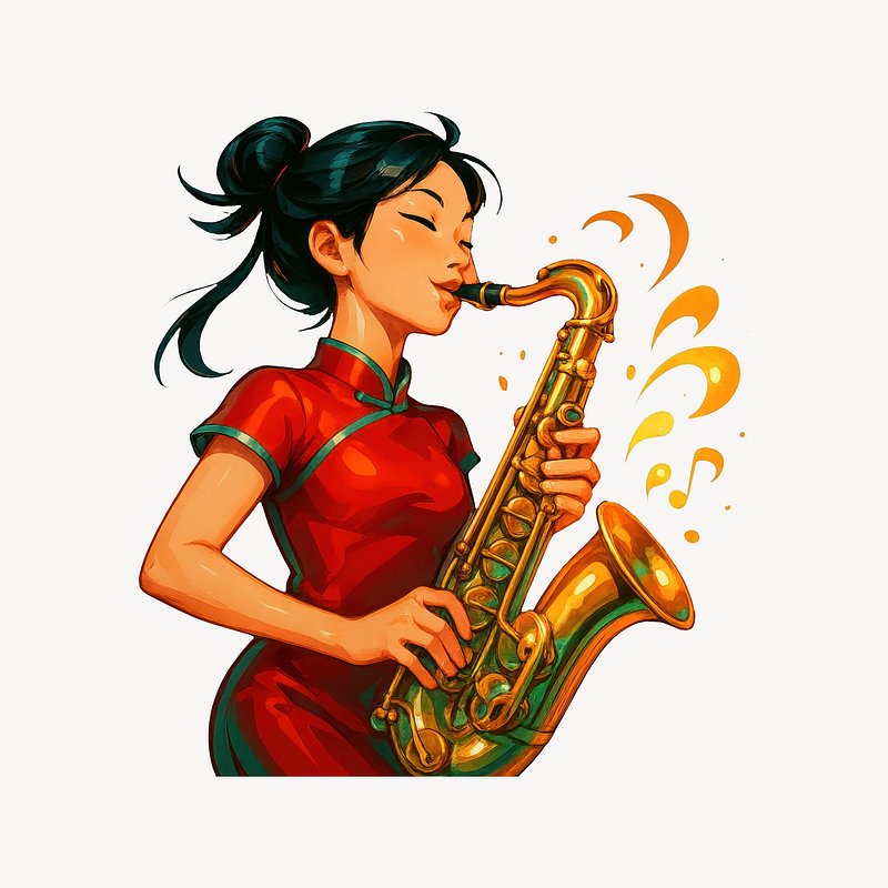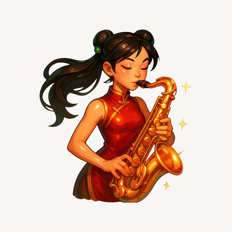 Animated girl playing saxophone beautifully. https://www.rawpixel.com/image/25063653/animated-girl-playing-saxophone-beautifullyView license
