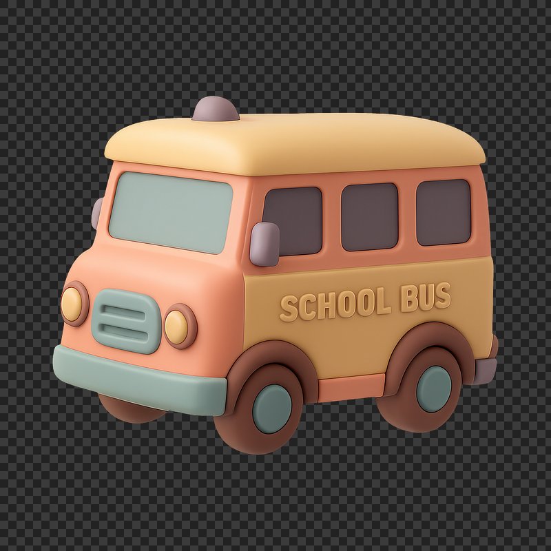 PNG Cute 3D school bus illustration. https://www.rawpixel.com/image/20616837/png-cute-school-bus-illustrationView license