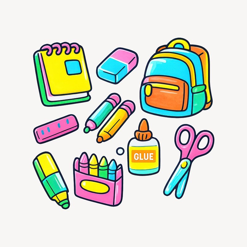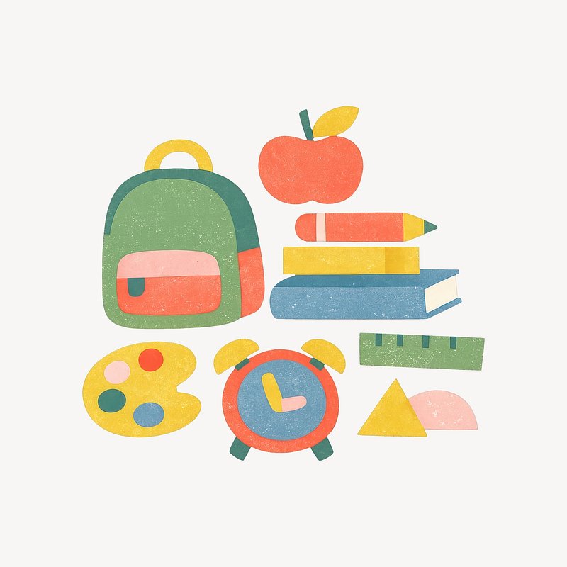 Colorful school supplies illustration. https://www.rawpixel.com/image/25721032/colorful-school-supplies-illustrationView license