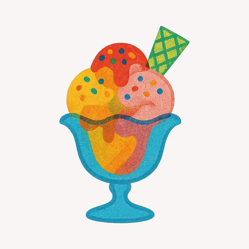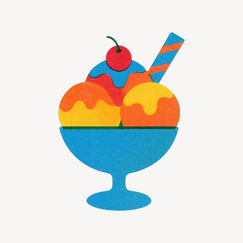 Colorful ice cream sundae illustration. https://www.rawpixel.com/image/22340271/colorful-ice-cream-sundae-illustrationView license