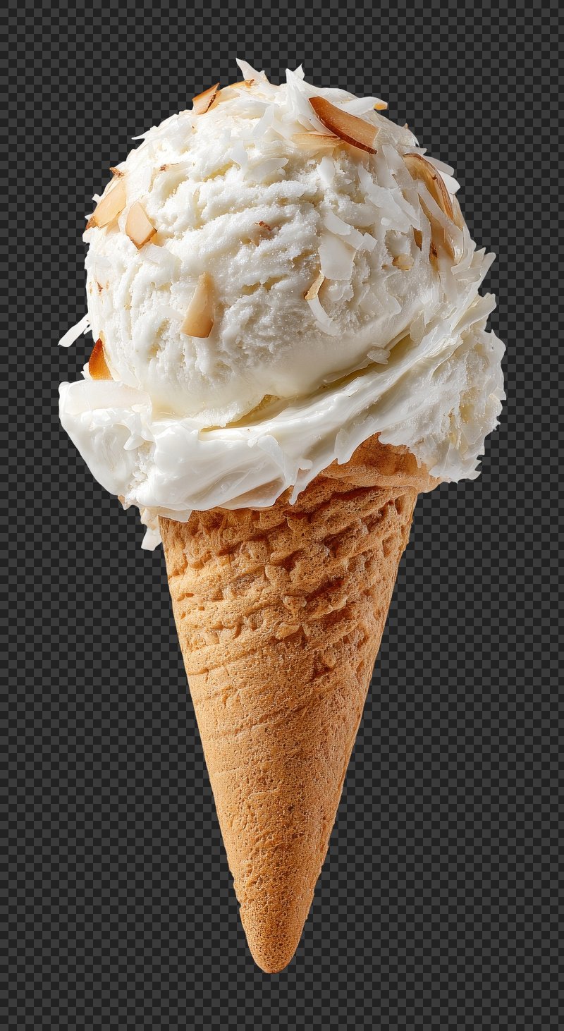 PNG Delicious coconut ice cream cone. https://www.rawpixel.com/image/25813235/png-delicious-coconut-ice-cream-coneView license