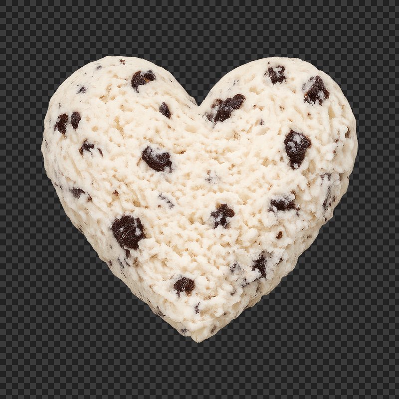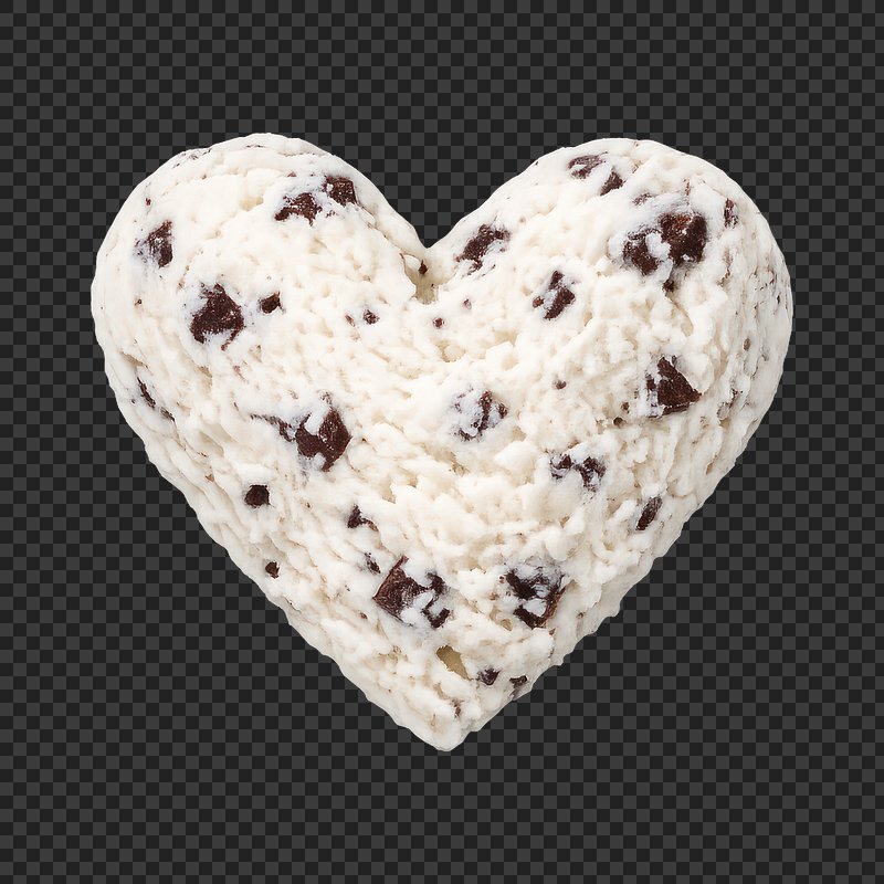 PNG Heart-shaped chocolate chip ice cream. https://www.rawpixel.com/image/25528764/png-heart-shaped-chocolate-chip-ice-creamView license