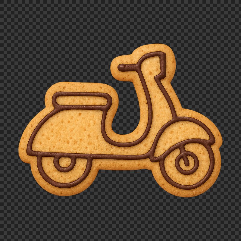 PNG Scooter-shaped cookie with icing. https://www.rawpixel.com/image/24229967/png-scooter-shaped-cookie-with-icingView license