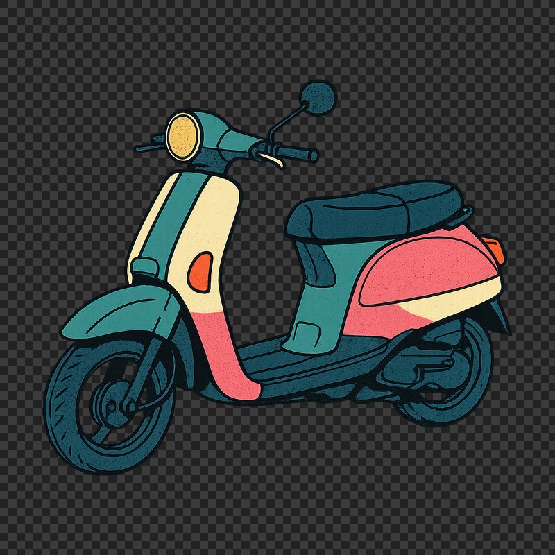 PNG Colorful retro scooter illustration. https://www.rawpixel.com/image/24669444/png-colorful-retro-scooter-illustrationView license