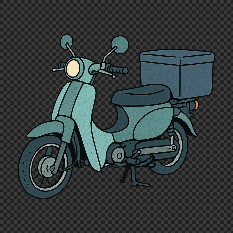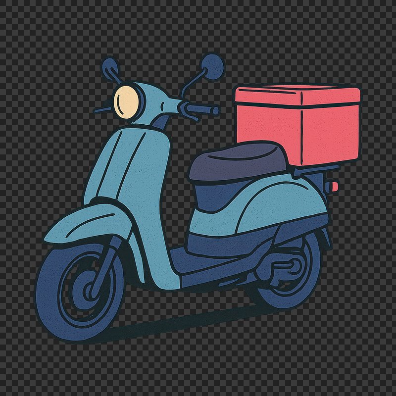 PNG Cartoon scooter with delivery box. https://www.rawpixel.com/image/24632453/png-cartoon-scooter-with-delivery-boxView license