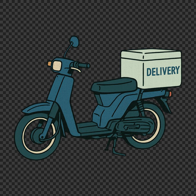 PNG Vintage pizza delivery scooter illustration. https://www.rawpixel.com/image/24301158/png-vintage-pizza-delivery-scooter-illustrationView license