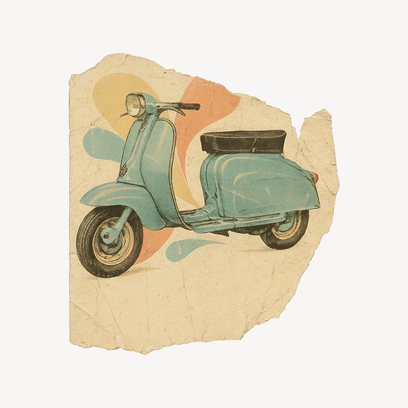 Vintage scooter art collage design. https://www.rawpixel.com/image/24567805/vintage-scooter-art-collage-designView license