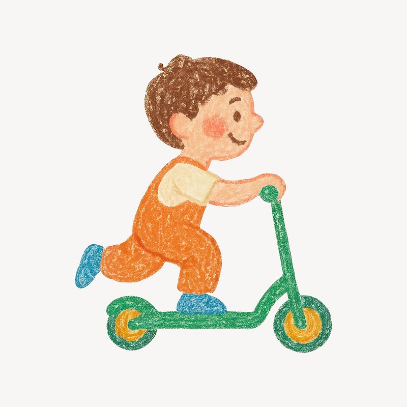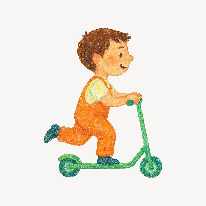 PNG Child riding colorful scooter joyfully. https://www.rawpixel.com/image/24751876/png-child-riding-colorful-scooter-joyfullyView license