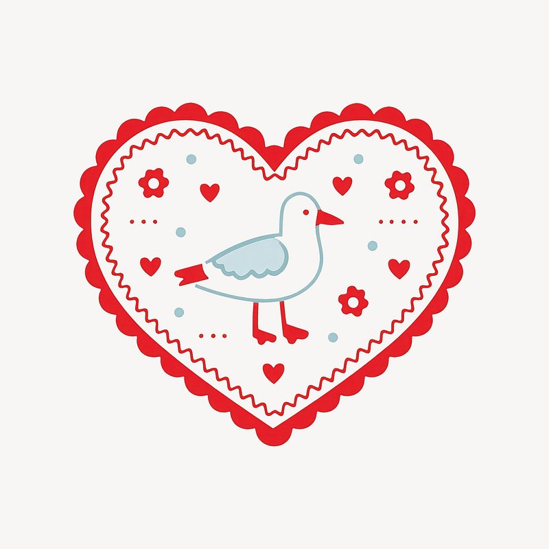 Whimsical heart seagull illustration. https://www.rawpixel.com/image/25225275/whimsical-heart-seagull-illustrationView license
