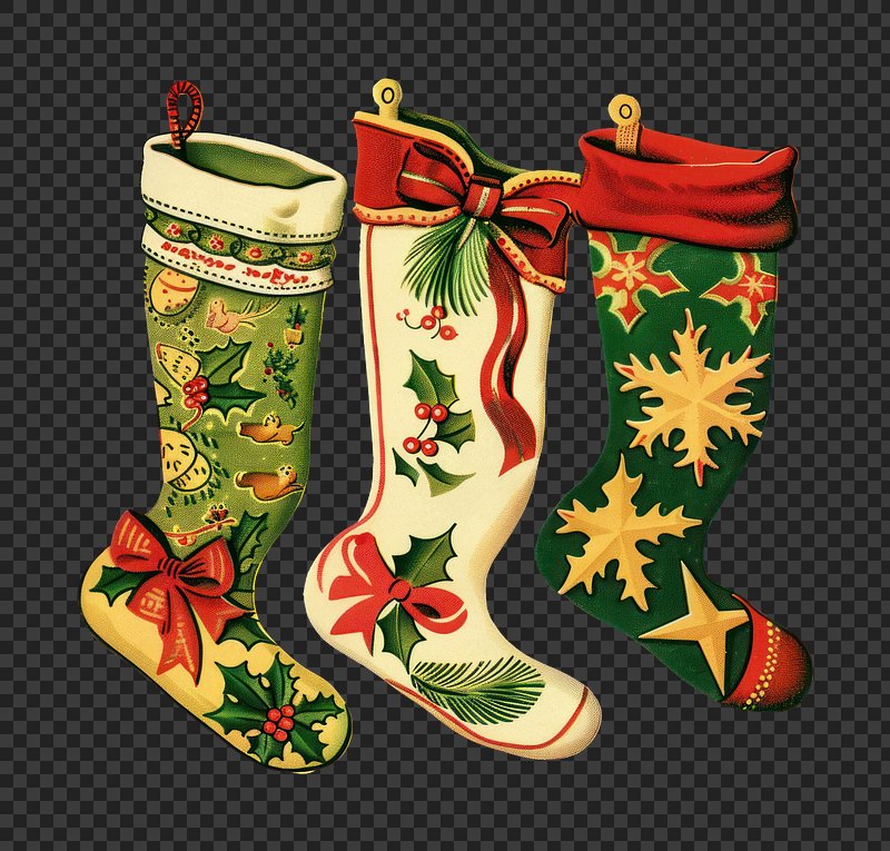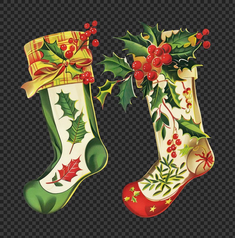 PNG Festive stockings with holly decor https://www.rawpixel.com/image/24908366/png-festive-stockings-with-holly-decorView license