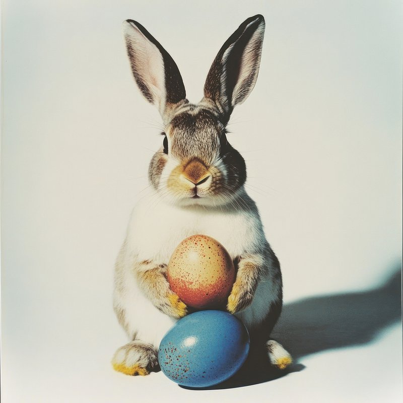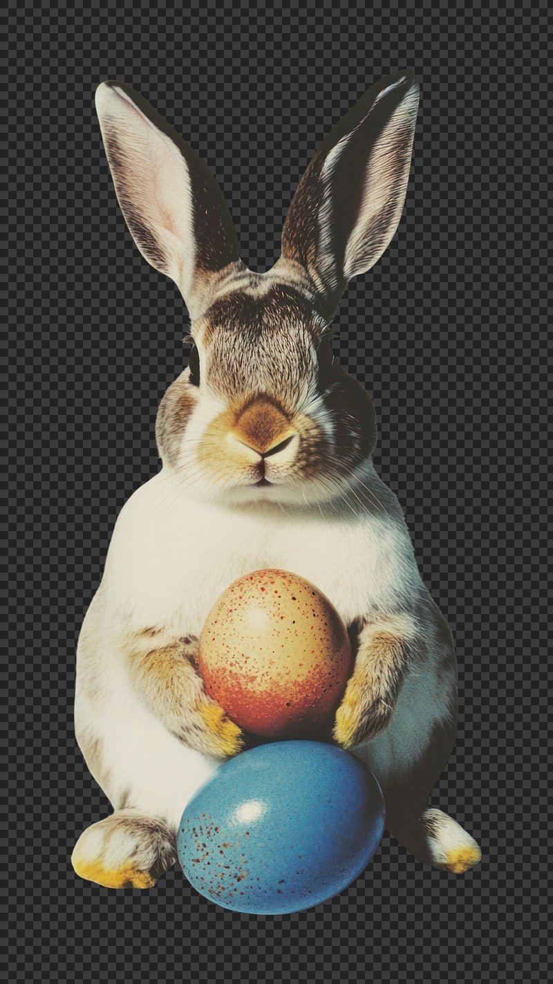 Rabbit holding colorful eggs. https://www.rawpixel.com/image/25040158/rabbit-holding-colorful-eggsView license