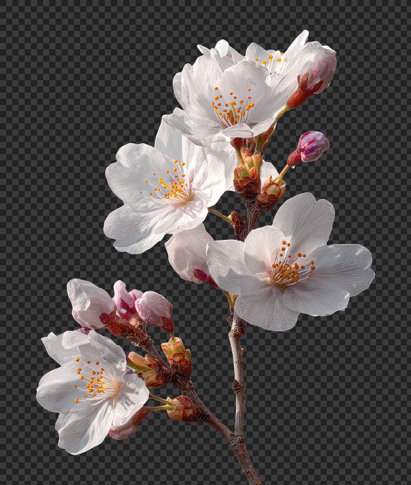 PNG Delicate cherry blossoms in bloom. https://www.rawpixel.com/image/24928833/png-delicate-cherry-blossoms-bloomView license
