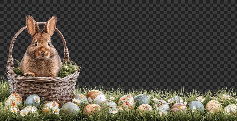 PNG Rabbit sitting in a basket on the meadow background easter eggs. https://www.rawpixel.com/image/24954549/png-rabbit-sitting-basket-the-meadow-background-easter-eggsView license