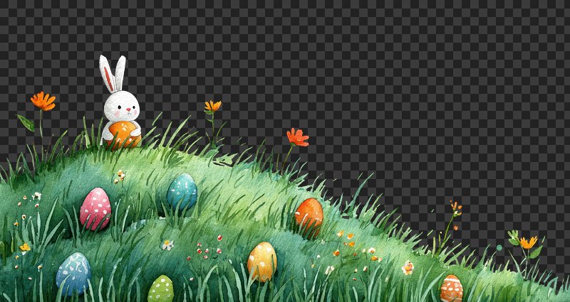 PNG Whimsical bunny amidst colorful eggs. https://www.rawpixel.com/image/25252490/png-whimsical-bunny-amidst-colorful-eggsView license