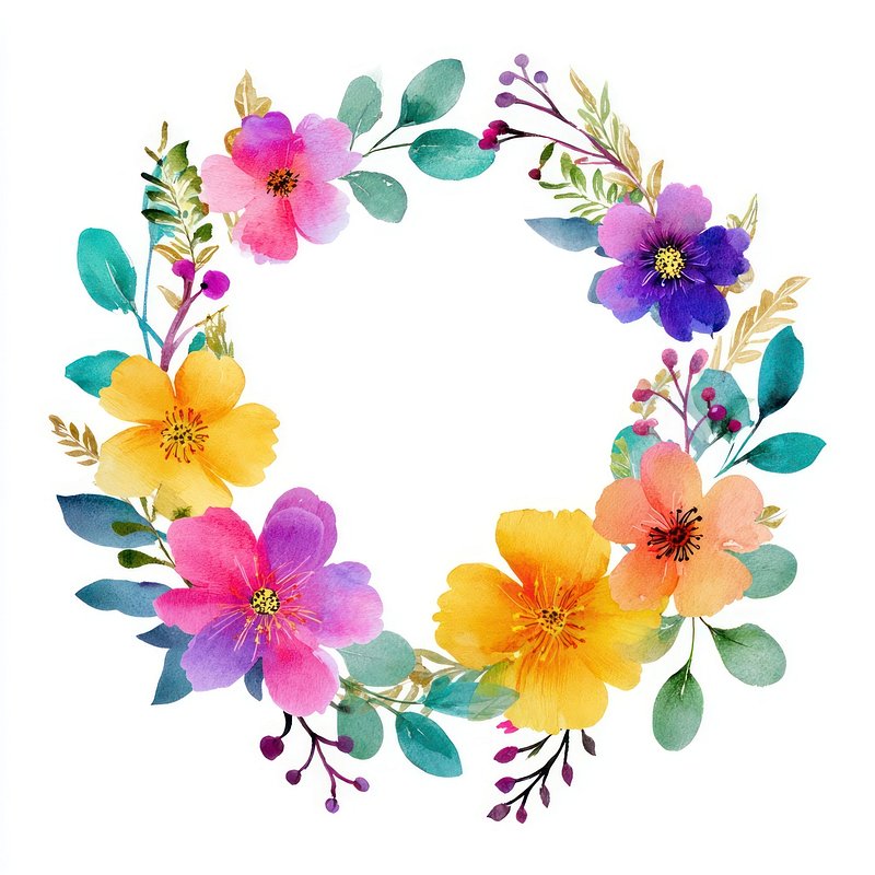 Vibrant floral watercolor wreath https://www.rawpixel.com/image/24789979/vibrant-floral-watercolor-wreathView license