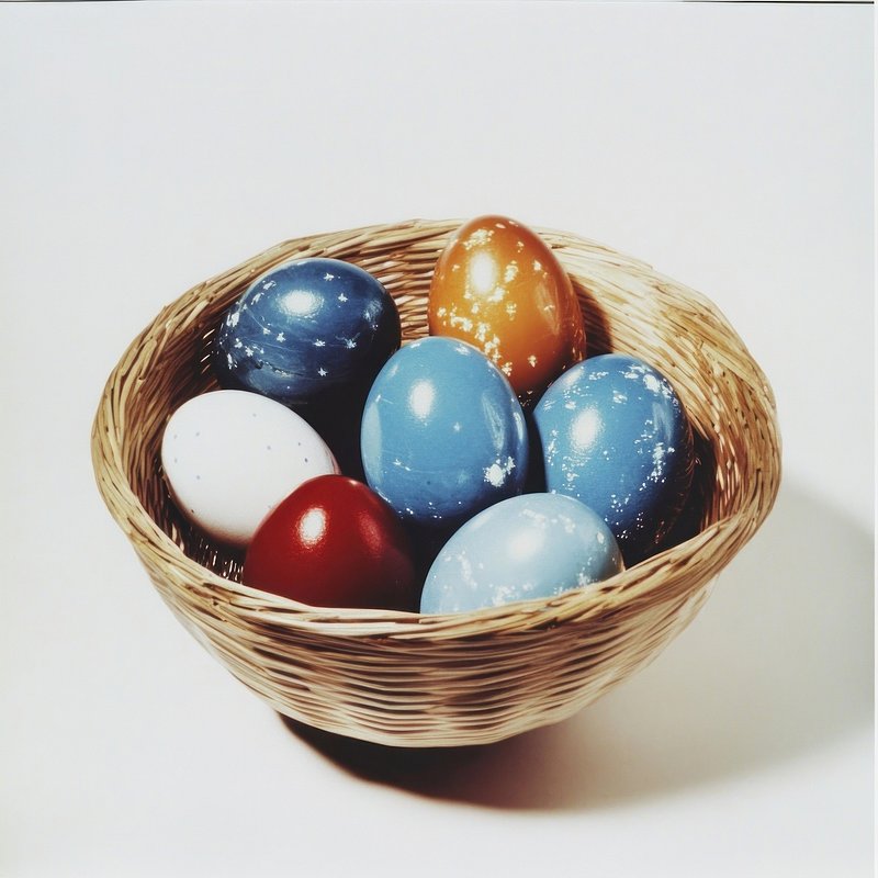Colorful eggs in basket. https://www.rawpixel.com/image/25040136/colorful-eggs-basketView license