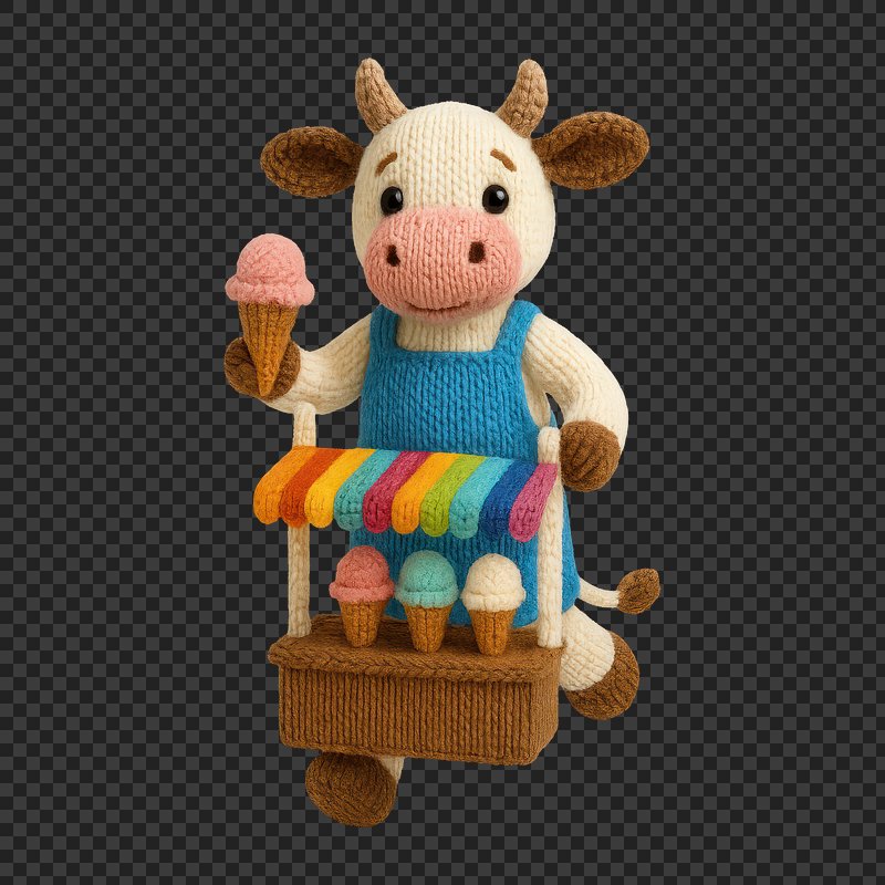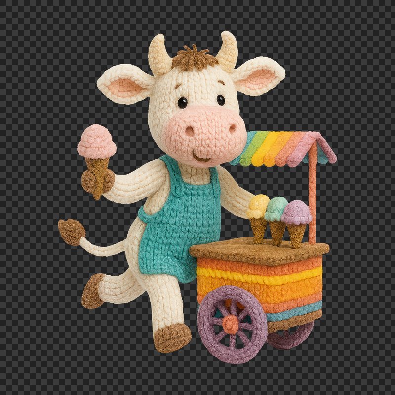 PNG Crochet cow selling ice cream. https://www.rawpixel.com/image/24443555/png-crochet-cow-selling-ice-creamView license