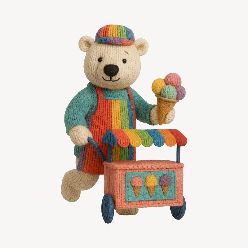 Knitted bear selling ice cream. https://www.rawpixel.com/image/24604415/knitted-bear-selling-ice-creamView license