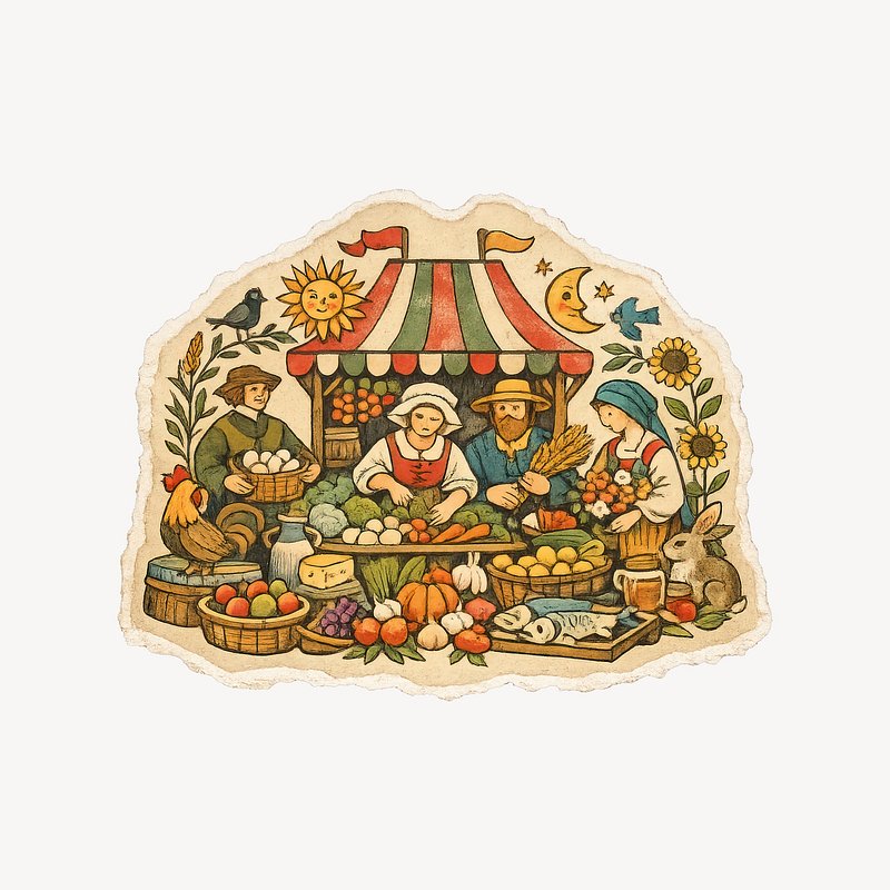 Charming medieval market illustration. https://www.rawpixel.com/image/25537939/charming-medieval-market-illustrationView license
