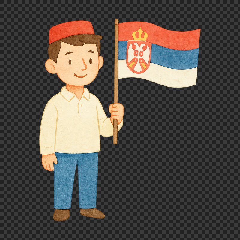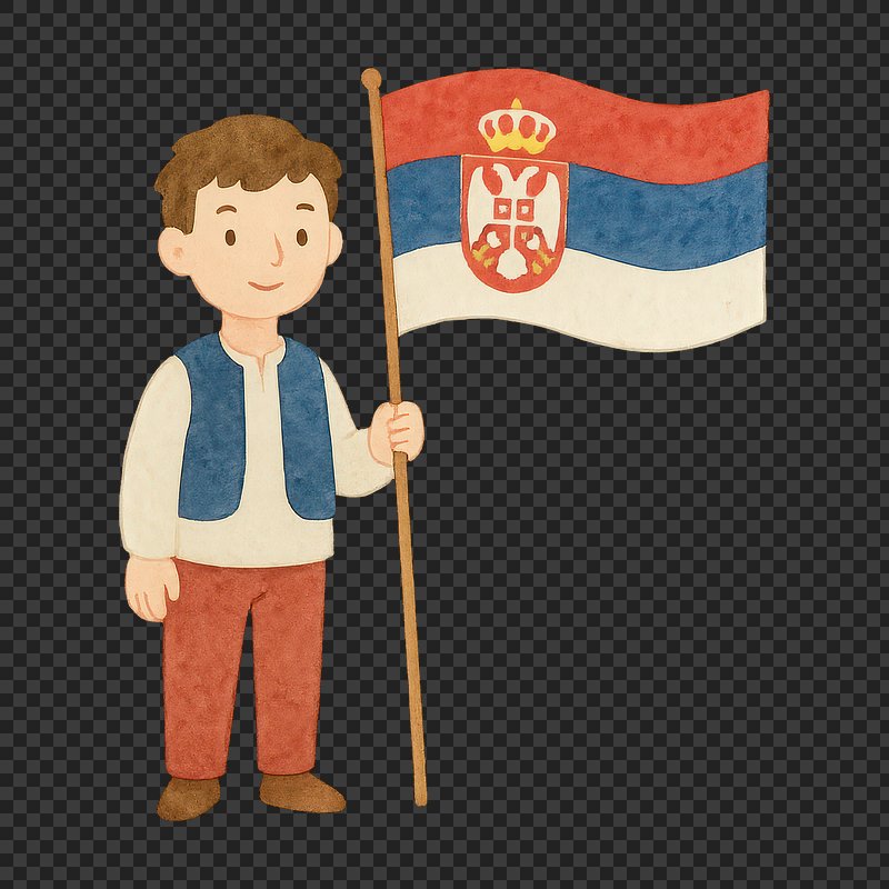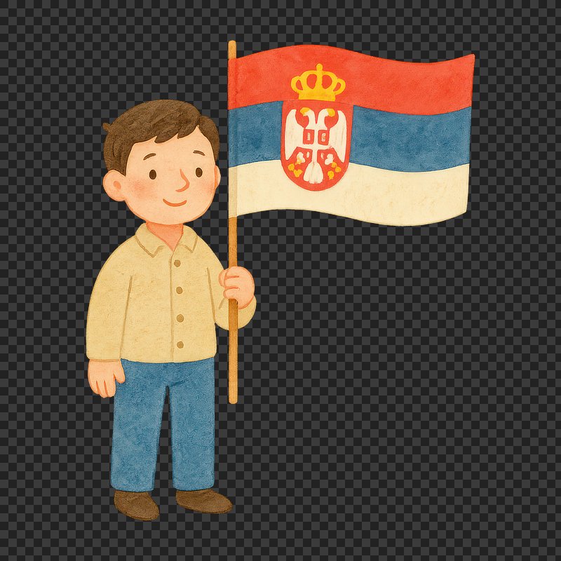 Cartoon character holding Serbian flag. https://www.rawpixel.com/image/20730284/cartoon-character-holding-serbian-flagView license