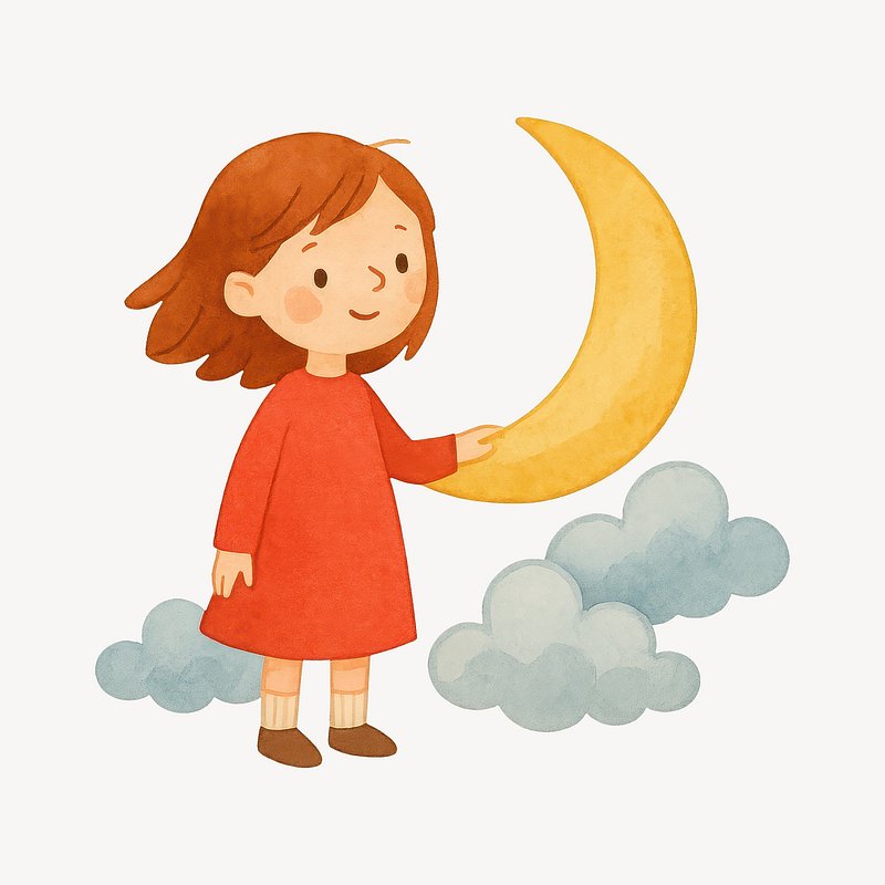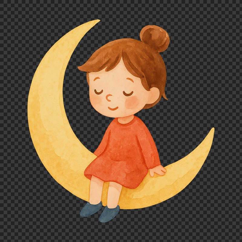 Child holding crescent moon illustration. https://www.rawpixel.com/image/19375878/child-holding-crescent-moon-illustrationView license