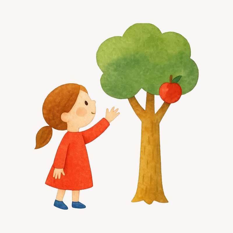 Child reaching apple tree illustration. https://www.rawpixel.com/image/19372728/child-reaching-apple-tree-illustrationView license
