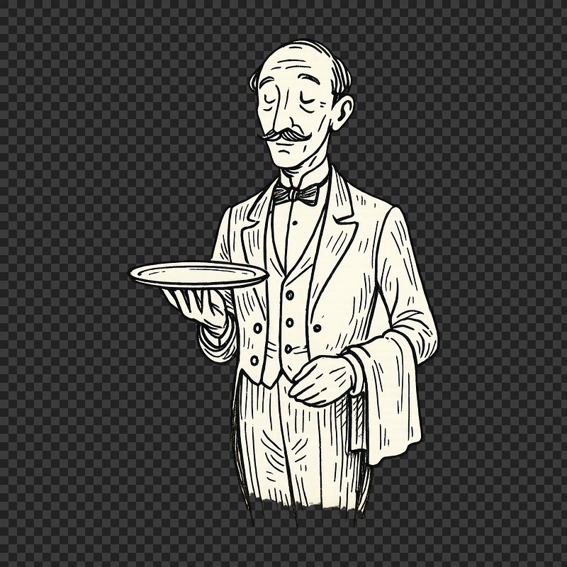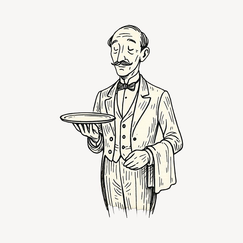 Vintage waiter illustration with tray. https://www.rawpixel.com/image/24341019/vintage-waiter-illustration-with-trayView license