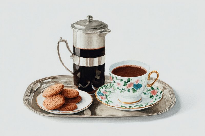 Hot choco with cookies vintage silver tray. https://www.rawpixel.com/image/21480729/hot-choco-with-cookies-vintage-silver-trayView license