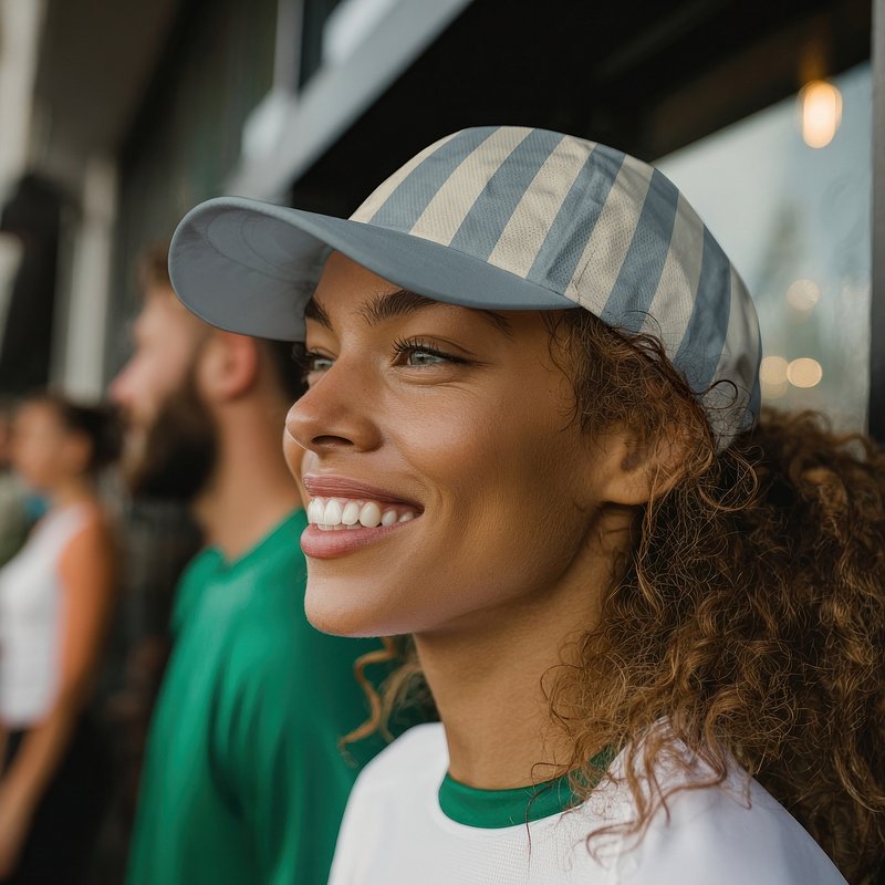 Striped cap mockup worn by woman psd https://www.rawpixel.com/image/23465429/striped-cap-mockup-worn-woman-psdView license