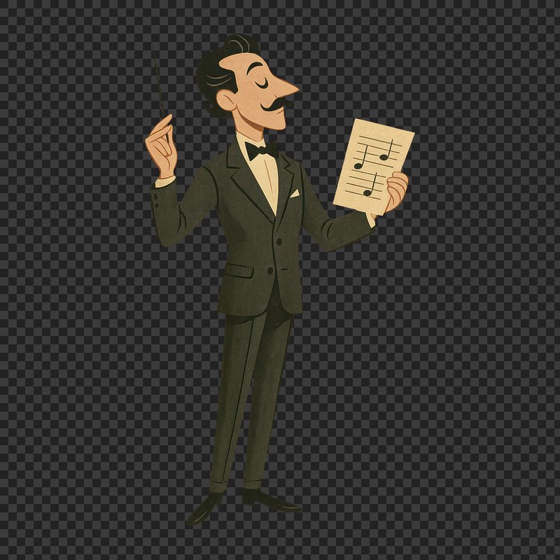 PNG Conductor holding music sheet illustration. https://www.rawpixel.com/image/20658124/png-conductor-holding-music-sheet-illustrationView license