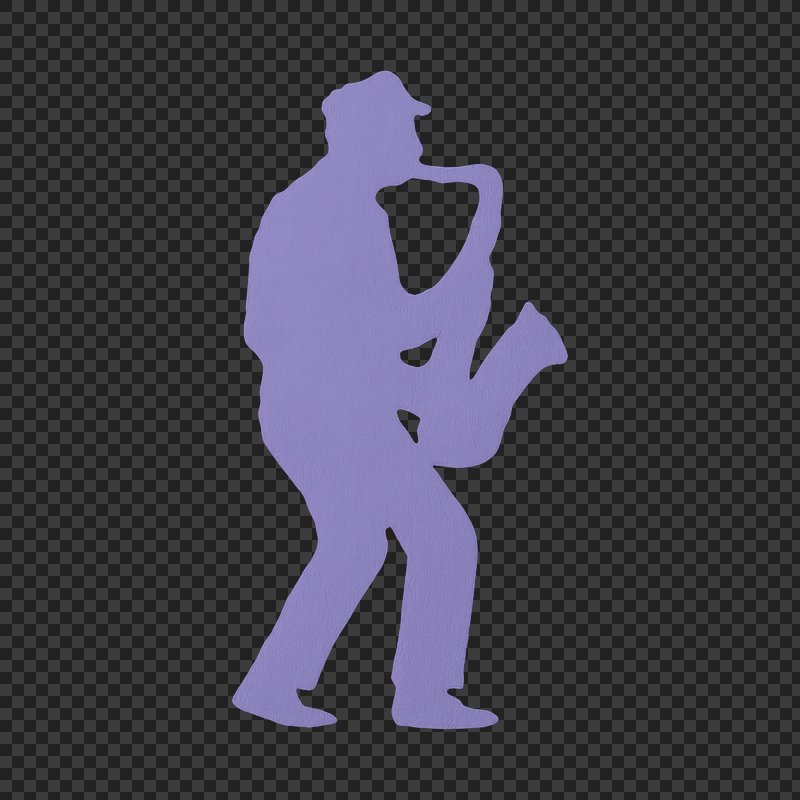 PNG Silhouette of saxophonist playing. https://www.rawpixel.com/image/23806458/png-silhouette-saxophonist-playingView license