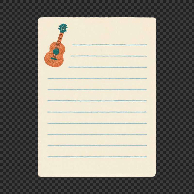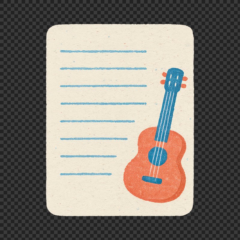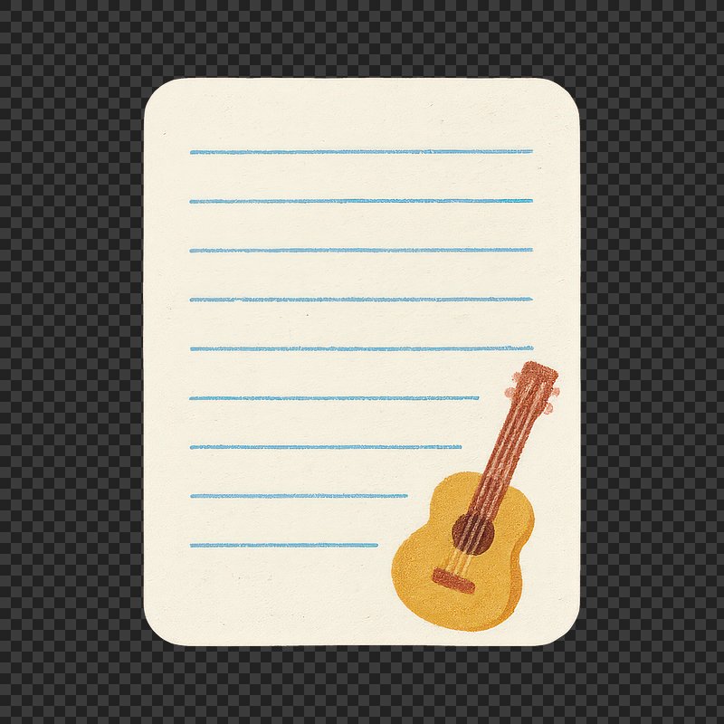 PNG Musical notepad with guitar https://www.rawpixel.com/image/23637233/png-musical-notepad-with-guitarView license