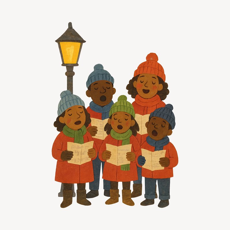Joyful carolers singing under lamppost. https://www.rawpixel.com/image/22907607/joyful-carolers-singing-under-lamppostView license