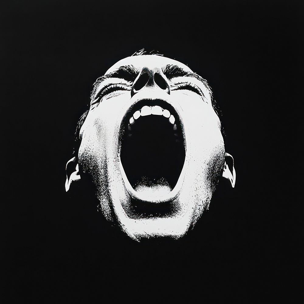An isolated black and white shouting man illustration portrait photo. https://www.rawpixel.com/image/16037291/isolated-black-and-white-shouting-man-illustration-portrait-photoView license