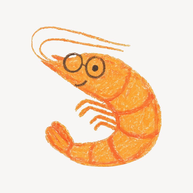 Cute shrimp illustration with glasses. https://www.rawpixel.com/image/24788665/cute-shrimp-illustration-with-glassesView license
