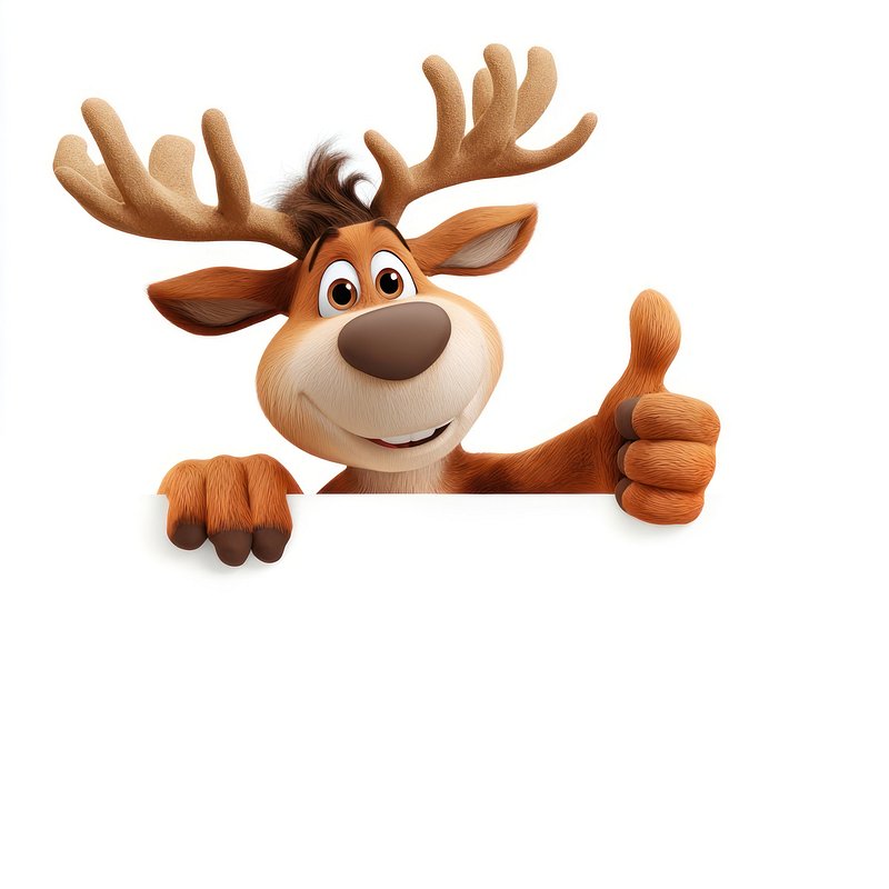 Cheerful cartoon reindeer thumbs-up. https://www.rawpixel.com/image/23322303/cheerful-cartoon-reindeer-thumbs-upView license