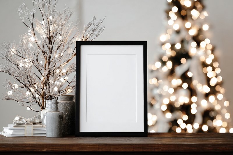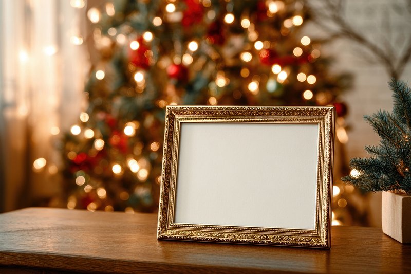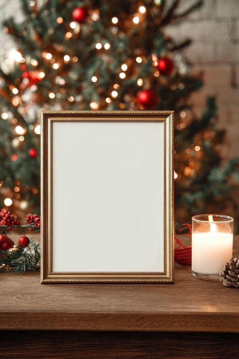 Festive frame beside Christmas tree. https://www.rawpixel.com/image/24035610/festive-frame-beside-christmas-treeView license